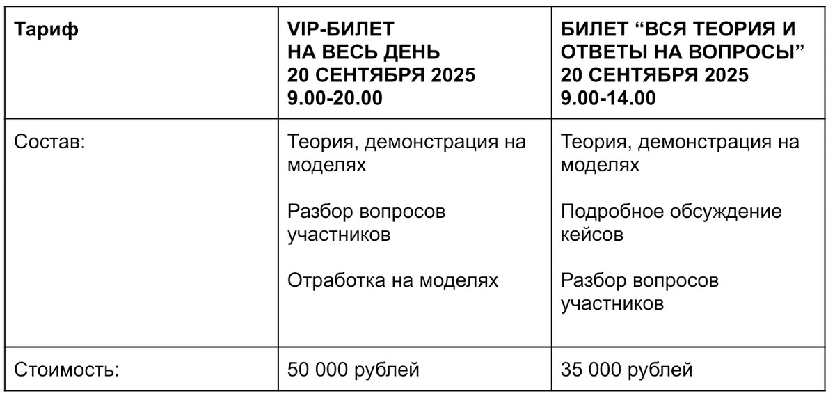 3.2. После совершения действий, предусмотренных пунктом 3.1. настоящего Договора, Заказчик имеет право на участие в мастер классе, согласно тарифам, указанным в п.п. 3.3. настоящей оферты.